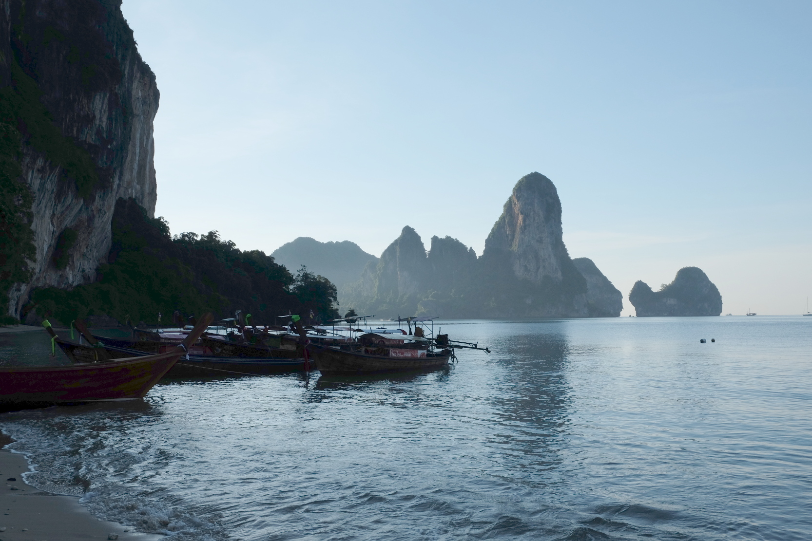 С рейли восточного на Прананг идёт тропинка вдоль скалы, там висят указатели, с одной стороны будут скалы, с другой стены отелей. Между всеми островами ходят лонгтэйлы-лодки.